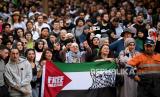 REPUBLIKA.CO.ID,SIDNEY -- Ribuan warga Australia memadati kawasan Gedung Opera di Sidney, Australia, Senin (9/10/2023), untuk mendukung kemerdekaan Palestina.