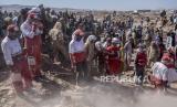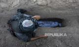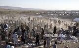 REPUBLIKA.CO.ID, HERAT -- Warga Afghanistan menguburkan ratusan orang secara massal yang tewas dalam gempa bumi di sebuah tempat pemakaman, di luar sebuah desa di distrik Zenda Jan di provinsi Herat, sebelah barat Afghanistan, Senin, (9/10/2023).