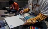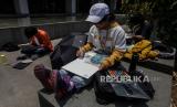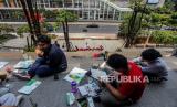 REPUBLIKA.CO.ID, JAKARTA -- Sejumlah mahasiswa Institut Kesenian Jakarta (IKJ) saat melukis di depan Gedung Sarinah, Jakarta, Selasa (10/10/2023).