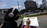 Sejumlah mahasiswa Institut Kesenian Jakarta (IKJ) saat melukis di depan Gedung Sarinah, Jakarta, Selasa (10/10/2023). Kegiatan melukis di ruang publik tersebut merupakan salah satu tugas bagi mahasiswa baru Fakultas Seni Rupa Desain (FSRD) untuk mengembangkan keahlian dalam bidang seni rupa. (FOTO : Republika/Putra M. Akbar)