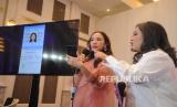 Senior Vice President, Category Director FMCG Lazada Indonesia Lia Kurtz (kanan) dan Pemengaruh kecantikan Putri Caya (kiri) sedang menscanning wajah melalui fitur skin test dalam acara satu tahun LazBeauty di Jakarta, Selasa (10/10/2023)  LazBeauty kanal khusus produk-produkkecantikan di Lazada, memperkenalkan inovasi barunya dalam berbagai fitur dan inovasi berbasis teknologi untuk lebih memudahkan konsumen berbelanja produk kecantikan yang sesuai dengan kebutuhannya secara online. Fitur berbasis teknologi ini ditujukan untuk memberikan rekomendasi produk kecantikan yang dipersonalisasi sesuai dengan kebutuhan kondisi kulit maupun budget, sehingga konsumen memiliki mindset smart beauty consumption.  (FOTO : Republika/ Tahta Aidilla)