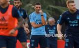 Pelatih tim sepak bola Argentina, Lionel Scaloni, menyaksikan pemain saat sesi latihan di Buenos Aires, Rabu (11/10/2023)WIB. (FOTO : EPA-EFE/JUAN IGNACIO RONCORONI)