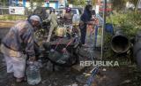 Warga mengisi air bersih ke dalam ember di PDAM Tirta Raharja, Cimahi Utara, Kota Cimahi, Jawa Barat, Rabu (11/10/2023). Berdasarkan data dari BPBD Provinsi Jawa Barat hingga (10/10/2023), sebanyak 287.288 kepala keluarga (KK) dari 23 kabupaten dan kota di Jawa Barat terdampak kekeringan berupa kekurangan air bersih. (FOTO : ABDAN SYAKURA/REPUBLIKA)
