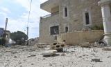 Sebuah bangunan rusak di desa Dhayra, Lebanon selatan dekat perbatasan Lebanon-Israel, Lebanon, (11/10/2023). (FOTO : EPA-EFE/WAEL HAMZEH)