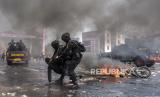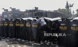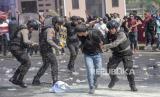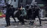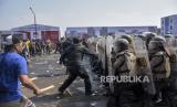 REPUBLIKA.CO.ID, BANDUNG -- Petugas kepolisian mengamankan pengunjuk rasa yang anarkis saat Latihan Gabungan Fungsi Tingkat Polda di Lapangan Brigif 15 Kujang Cimahi, Kota Cimahi, Jawa Barat, Kamis (12/10/2023).