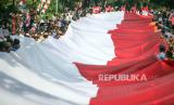 REPUBLIKA.CO.ID, CIBINONG -- Personel gabungan TNI Polri membawa bendera merah putih berukuran 5x100 meter saat Kirab Bendera Merah Putih di Cibinong, Kabupaten Bogor, Jawa Barat, Kamis (12/10/2023).