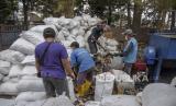 Sejumlah pekerja memasukkan sampah residu ke dalam karung di TPS Tegallega, Kota Bandung, Jawa Barat, Kamis (12/10/2023). Pemerintah Kota Bandung menyatakan, masa darurat sampah di Kota Bandung berlaku hingga 25 Oktober mendatang. Saat ini, Kota Bandung menghasilkan sebanyak 1.600 ton sampah per hari dengan jumlah TPS sebanyak 135 unit. (FOTO : ABDAN SYAKURA/REPUBLIKA)