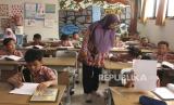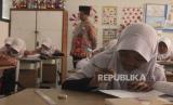 REPUBLIKA.CO.ID, JAKARTA -- Sejumlah siswa mengikuti kegiatan belajar mengajar di SDN 11 Grogol, Jakarta, Kamis (12/10/2023).