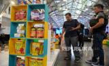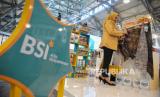 Pengunjung mengamati produk yang dipamerkan dalam acara Awarding Talenta Wirausaha BSI dan BSI Aceh Muslimpreneur di Jakarta, Kamis (12/10/2023). PT Bank Syariah Indonesia Tbk menggelar Awarding Talenta Wirausaha BSI dan BSI Aceh Muslimpreneur sebagai upaya mendukung pengembangan ekosistem kewirausahaan bagi anak muda baik di pasar lokal maupun internasional. Lewat program tersebut BSI berharap mampu mendorong ekonomi syariah sebagai instrumen ekonomi yang berperan dalam mendorong ekonomi keumatan salah satunya melalui sektor UMKM. (FOTO : Republika/Thoudy Badai)