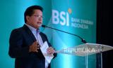 Direktur Utama PT Bank Syariah Indonesia Tbk Hery Gunardi menyampaikan sambutan dalam acara Awarding Talenta Wirausaha BSI dan BSI Aceh Muslimpreneur di Jakarta, Kamis (12/10/2023). PT Bank Syariah Indonesia Tbk menggelar Awarding Talenta Wirausaha BSI dan BSI Aceh Muslimpreneur sebagai upaya mendukung pengembangan ekosistem kewirausahaan bagi anak muda baik di pasar lokal maupun internasional. Lewat program tersebut BSI berharap mampu mendorong ekonomi syariah sebagai instrumen ekonomi yang berperan dalam mendorong ekonomi keumatan salah satunya melalui sektor UMKM. (FOTO : Republika/Thoudy Badai)