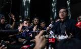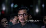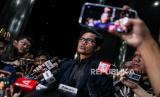 Kuasa Hukum Syahrul Yasin Limpo, Febri Diansyah menjawab pertanyaan wartawan setibanya di Gedung Merah Putih KPK, Jakarta, Kamis (12/10/2023). Febri Diansyah datang untuk memberikan pendampingan hukum pada mantan Menteri Pertanian Syahrul Yasin Limpo pasca dijemput paksa oleh KPK. (FOTO : Republika/Putra M. Akbar)