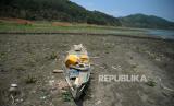 Tanah waduk yang mulai mengering imbas kemarau di Waduk Sempor, Kebumen, Jawa Tengah, Kamis (12/10/2023). Warga sekitar Waduk Sempor memanfaatkan surutnya air waduk akibat kemarau dengan berbagai cara. Beberapa warga memilih untuk menanam aneka palawija di bagian waduk yang mengering. Selain itu, ada juga yang mencari kerang air tawar untuk menambah penghasilan, setiap kilogram daging kerang air tawar dijual Rp 50 ribu. Ada juga warga yang mencari rumput untuk pakan ternak di seberang waduk, dan rumput dijual kembali seharga Rp 25 ribu per karung. (FOTO : Republika/Wihdan Hidayat)