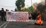 REPUBLIKA.CO.ID,PALANGKA RAYA -- Sejumlah mahasiswa yang tergabung dalam Aliansi Cipayung Sangkal berunjuk rasa di depan Kantor Kepolisian Daerah (Polda) Kalimantan Tengah, Palangka Raya, Kamis (12/10/2023).
