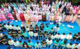 Sejumlah siswa SD Al Firdaus Solo melakukan shalat ghaib dan doa bersama untuk warga Palestina yang tewas dalam konflik dengan Israel di Solo, Jawa Tengah, Jumat (13/10/2023). Kegiatan itu untuk memupuk solidaritas sesama umat muslim sekaligus sebagai edukasi bagi siswa bahwa penjajahan di atas dunia harus dihapuskan karena tidak sesuai dengan perikemanusaaan yang dijunjung Bangsa Indonesia. (FOTO : Antara/Maulana Surya)