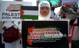 Massa mendesak pemerintah Indonesia untuk membantu rakyat Palestina.