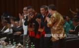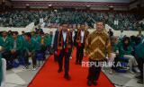 Direktur Utama Bank BTN Nixon LP Napitupulu (kedua kanan) bersama Rektor Universitas Syiah Kuala Prof. Dr. Ir. Marwan (kanan) saat menghadiri Pelatihan Developer Milenial Bank BTN yang diselenggarakan di Audiotorium Universitas Syiah Kuala (USK), Banda Aceh, Jumat (13/10/2023). Bank BTN mengajak para mahasiswa untuk menjadi pengusaha properti atau developer yang memiliki potensi bisnis yang besar dikarenakan angka backlog perumahan yang masih tinggi sebanyak 12,71 juta unit. (FOTO : Dok Republika)