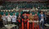 Direktur Utama Bank BTN Nixon LP Napitupulu bersama Rektor Universitas Syiah Kuala Prof. Dr. Ir. Marwan berfoto bersama saat menghadiri Pelatihan Developer Milenial Bank BTN yang diselenggarakan di Audiotorium Universitas Syiah Kuala (USK), Banda Aceh, Jumat (13/10/2023). Bank BTN mengajak para mahasiswa untuk menjadi pengusaha properti atau developer yang memiliki potensi bisnis yang besar dikarenakan angka backlog perumahan yang masih tinggi sebanyak 12,71 juta unit. (FOTO : Dok Republika)
