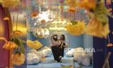 Pengunjung beraktivitas di salah satu ruangan di Museum Patah Hati, Braga CityWalk, Kota Bandung, Jawa Barat, Jumat (13/10/2023). Event experiential karya CreativeIntel dan Haluuworld tersebut menampilkan berbagai instalasi penuh warna dengan konsep dan cerita yang menarik tentang pengalaman patah hati. Museum Patah Hati tersebut digelar hingga 8 Desember mendatang, dengan harga tiket masuk sebesar Rp49 ribu per orang. (FOTO : ABDAN SYAKURA/REPUBLIKA)