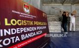REPUBLIKA.CO.ID, ACEH -- Petugas menurunkan bilik pemungutan suara Pemilu 2024 di gudang logistik Komisi Independen Pemilihan (KIP) Kota Banda Aceh, Aceh, Jumat (13/10/2023). KIP Kota Banda Aceh menerima 2.472 lembar bilik pemungutan suara untuk kebutuhan perlengkapan 618 Tempat Pemungutan Suara (TPS) pada Pemilu serentak 2024 tanggal 14 Februari 2024.