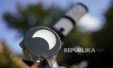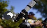 Gerhana matahari sebagian terlihat melalui teleskop di Marietta, Georgia, AS   (FOTO : AP Photo/Mike Stewart)