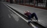 Seorang pria berbaring di tanah untuk menyaksikan gerhana matahari  (FOTO : AP/Moises Castillo)