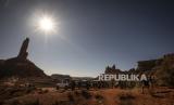 Pengunjung berkumpul untuk memotret gerhana matahari cincin di Lembah Para Dewa di luar Monumen Nasional Bears Ears di Utah, pada Sabtu, (14/10/2023). (FOTO : Carlos Avila Gonzalez/San Francisco Chronicle)