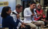 Direktur Utama RS Mata JEC @ Menteng Referano Agustiawan menyampaikan paparan disela acara Bakti Sosial Operasi Mata Juling JEC di Jakarta, Sabtu (14/10/2023). JEC Eye Hospitals and Clinics mengadakan kembali kembali Bakti Sosial Operasi Mata Juling JEC untuk memberikan edukasi serta tindakan operasi mata juling gratis sekaligus memperingati World Sight Day 2023. (FOTO : Republika/Putra M. Akbar)