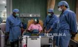 Perawat mengecek keadaan pasien pasca tindakan operasi pada acara Bakti Sosial Operasi Mata Juling JEC di RS Mata JEC @ Menteng, Jakarta, Sabtu (14/10/2023). JEC Eye Hospitals and Clinics mengadakan kembali kembali Bakti Sosial Operasi Mata Juling JEC untuk memberikan edukasi serta tindakan operasi mata juling gratis sekaligus memperingati World Sight Day 2023. (FOTO : Republika/Putra M. Akbar)