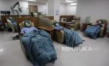 Sejumah pasien menunggu sebelum tindakan operasi pada acara Bakti Sosial Operasi Mata Juling JEC di RS Mata JEC @ Menteng, Jakarta, Sabtu (14/10/2023). JEC Eye Hospitals and Clinics mengadakan kembali kembali Bakti Sosial Operasi Mata Juling JEC untuk memberikan edukasi serta tindakan operasi mata juling gratis sekaligus memperingati World Sight Day 2023. (FOTO : Republika/Putra M. Akbar)