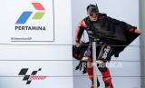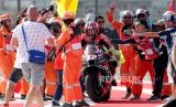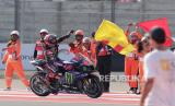 Sejumlah marshal mendorong motor pembalap Repsol Honda Team MotoGP Marc Marquez yang terjatuh saat balapan MotoGP seri Pertamina Grand Prix of Indonesia 2023 di Pertamina Mandalika International Street Circuit, Lombok Tengah, NTB, Ahad (15/10/2023). Francesco Bagnaia berhasil menjadi juara pertama diikuti Pembalap Aprilia Racing Maverick Vinales diposisi kedua dan Pembalap Monster Energy Yamaha Fabio Quartararo diposisi ketiga. (FOTO : ANTARA FOTO/Ahmad Subaidi)