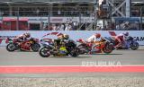 Sejumlah pembalap MotoGP memulai start balapan MotoGP seri Pertamina Grand Prix of Indonesia 2023 di Pertamina Mandalika International Street Circuit, Lombok Tengah, NTB, Ahad (15/10/2023). Francesco Bagnaia berhasil menjadi juara pertama diikuti Pembalap Aprilia Racing Maverick Vinales diposisi kedua dan Pembalap Monster Energy Yamaha Fabio Quartararo diposisi ketiga.ANTARA FOTO/Ahmad Subaidi/nz (FOTO : ANTARA FOTO/Ahmad Subaidi)