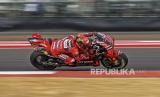Pembalap Ducati Lenovo Team Francesco Bagnaia memacu kecepatan saat balapan MotoGP seri Pertamina Grand Prix of Indonesia 2023 di Pertamina Mandalika International Street Circuit, Lombok Tengah, NTB, Ahad (15/10/2023). Francesco Bagnaia berhasil menjadi juara pertama diikuti Pembalap Aprilia Racing Maverick Vinales diposisi kedua dan Pembalap Monster Energy Yamaha Fabio Quartararo diposisi ketiga. (FOTO : ANTARA FOTO/Ahmad Subaidi)