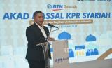 Direktur Consumer Bank BTN Hirwandi Gafar memberikan sambutan acara Akad Massal KPR Syariah Serentak di Perumahan Hadrah Land, Kabupaten Aceh Besar, Provinsi Aceh, Jumat (13/10/2023). Unit Usaha Syariah (UUS) PT Bank Tabungan Negara (Persero) Tbk (BTN Syariah) siap menjadi bank terbesar di Provinsi Aceh. Salah satunya dengan memperbesar pembiayaan perumahan di provinsi yang menerapkan aturan syariat Islam atau Qanun tersebut. Jumlah Akad Massal KPR Syariah Bank BTN Syariah di Aceh sebanyak 2.187 unit rumah yang terdiri dari 1.779 rumah Subsidi dan 364 rumah Non Subsidi ini diikuti oleh 33 Kantor Cabang Syariah (KCS) di seluruh Indonesia. (FOTO : Dok Republika)