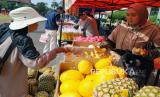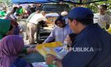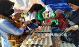 Warga berbelanja dalam kegiatan Gerakan Pangan Murah yang diigelar Pemkot Bandung bersama Badan Pangan Nasional (Bapanas), Seskoad, dan pihak terkait lainnya di Lapangan Seskoad, Jalan Gatot Subroto, (FOTO : Edi Yusuf/Republika)