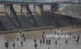 Warga Mencari Ikan Saat Penutupan Sementara Bendungan Colo
