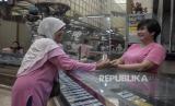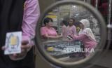 Karyawan melayani calon pembeli emas di salah satu toko emas dan perhiasan di Kota Bandung, Jawa Barat, Senin (16/10/2023). Harga emas batangan PT Aneka Tambang Tbk (Antam) tetap tinggi meski mengalami penurunan pada hari ini, Senin (16/10/2023). Untuk pecahan satu gram, emas batangan Antam dihargai Rp1.087.000 dari sebelumnya Rp1.088.000 per gram. Sementara harga pembelian kembali (buyback) tidak bergerak dan bertahan di level Rp969.000. (FOTO : ABDAN SYAKURA/REPUBLIKA)