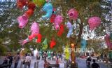 Instalasi seni sarang burung terpasang pada salah satu pohon di Jalan Malioboro, Yogyakarta, Senin (16/10/2023). Berbagai patung atau instalasi seni akan dijumpai di berbagai titik Jalan Malioboro hingga Titik Nol Kilometer Yogyakarta dalam rangka Jogja Street Sclupture Project (JSSP) 2023. Pada pameran patung luar ruangan terbesar di Indonesia JSSP ke-5 ini mengangkat tema Ruwat Gatra Rasa. Pameran ini diadakan sebagai salah satu cara merayakan Sumbu Filosofis Yogyakarta sebagai Warisan Budaya UNESCO. Pengunjung dapat menikmati hiburan tambahan aneka bentuk patung hingga 28 Oktober mendatang di Malioboro. (FOTO : Republika/Wihdan Hidayat)