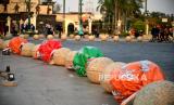 Permen raksasa menghiasai kawasan Titik Nol Kilometer Yogyakarta, Senin (16/10/2023). Berbagai patung atau instalasi seni akan dijumpai di berbagai titik Jalan Malioboro hingga Titik Nol Kilometer Yogyakarta dalam rangka Jogja Street Sclupture Project (JSSP) 2023. Pada pameran patung luar ruangan terbesar di Indonesia JSSP ke-5 ini mengangkat tema Ruwat Gatra Rasa. Pameran ini diadakan sebagai salah satu cara merayakan Sumbu Filosofis Yogyakarta sebagai Warisan Budaya UNESCO. Pengunjung dapat menikmati hiburan tambahan aneka bentuk patung hingga 28 Oktober mendatang di Malioboro. (FOTO : Republika/Wihdan Hidayat)