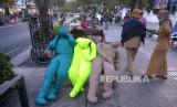 Instalasi seni beberapa boneka yang duduk di Jalan Malioboro, Yogyakarta, Senin (16/10/2023). Berbagai patung atau instalasi seni akan dijumpai di berbagai titik Jalan Malioboro hingga Titik Nol Kilometer Yogyakarta dalam rangka Jogja Street Sclupture Project (JSSP) 2023. Pada pameran patung luar ruangan terbesar di Indonesia JSSP ke-5 ini mengangkat tema Ruwat Gatra Rasa. Pameran ini diadakan sebagai salah satu cara merayakan Sumbu Filosofis Yogyakarta sebagai Warisan Budaya UNESCO. Pengunjung dapat menikmati hiburan tambahan aneka bentuk patung hingga 28 Oktober mendatang di Malioboro. (FOTO : Republika/Wihdan Hidayat)