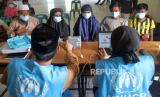 Pengungsi etnis Rohingya mengikuti pendataan sidik jari UHNCR saat berada di penampungan sementara di Gedung SKB Bireuen, Aceh, Senin (16/10/23). Sebanyak 36 orang pengungsi etnis Rohingya, terdiri dari 14 orang laki-laki, 12 orang perempuan dan 10 orang anak-anak ditemukan terdampar di perairan laut Matang Pasi, Kecamatan Peudada Kabupaten Bireun, Aceh.  (FOTO : ANTARA FOTO/Rahmad)