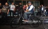 REPUBLIKA.CO.ID,JAKARTA -- Bacapres dari Koalisi Perubahan Anies Baswedan menaiki sepedanya seusai melakukan pemeriksaan kesehatan di RSUP Fatmawati, Jakarta, Selasa (17/10/2023).