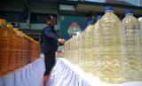 Puluhan botol barang bukti minuman keras yang akan dimusnahkan usai Apel Gelar Pasukan Operasi Mantap Brata Progo 2023-2024 di halaman Balikota Yogyakarta, Selasa (17/10/2023). Apel gelar pasukan gabungan ini dalam rangka pengamanan Pemilu serentak 2024 mendatang. Selain itu, berbagai peralatan pendukung pengamanan juga turut dipamerkan, mulai pakaian Dalmas, senapan pelontar gas air mata, serta senapan serbu. Usai pelaksanaan apel dilanjutkan dengan pemusnahan barang bukti hasil operasi cipta kondisi jelang Pemilu 2024 Polresta Yogyakarta. Barang bukti yang dimusnahkan diantaranya knalpot brong, minuman keras, dan obat-obatan terlarang. (FOTO : Republika/Wihdan Hidayat)