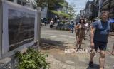 Warga melintas di dekat foto yang dipajang pada Bandung Photography Month (BPM) 2023 di Jalan Dalem Kaum, Kota Bandung, Jawa Barat, Selasa (17/10/2023). Acara yang diselenggarakan oleh Yayasan Raws Syndicate Indonesia tersebut diikuti oleh ratusan fotografer dari berbagai daerah di Indonesia dan Benua Asia. Acara yang berlangsung hingga 16 November mendatang tersebut digelar di beberapa titik di Kota Bandung. BPM 2023 yang mengusung tema Kembang, Asia Afrika dan Ruangnya itu bertujuan agar karya fotografi dapat dinikmati oleh masyarakat umum, serta upaya refleksi identitas sebuah kota terbentuk melalui sejarah, masyarakat dan ruang-ruang. (FOTO : ABDAN SYAKURA/REPUBLIKA)