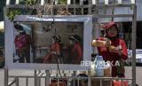 REPUBLIKA.CO.ID, BANDUNG -- Pengendara melintas di depan foto yang dipajang pada Bandung Photography Month (BPM) 2023 di Jalan Dalem Kaum, Kota Bandung, Jawa Barat, Selasa (17/10/2023).