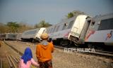 REPUBLIKA.CO.ID, KULONPROGO. -- Gerbong Kereta Api Argo Semeru anjlok di Stasiun Kali Menur, Sentolo, Kulonprogo, Yogyakarta, Selasa (17/10/2023).