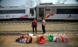Beberapa barang milik penumpang Kereta Api Argo Semeru anjlok di Stasiun Kali Menur, Sentolo, Kulonprogo, Yogyakarta, Selasa (17/10/2023). KA Argo Semeru relasi Surabaya Gubeng-Gambir anjlok di Stasiun Kali Menur dan menemper KA Argo Wilis relasi Bandung-Surabaya Gubeng. Dalam kecelakaan ini tidak ada korban jiwa. (FOTO : Republika/Wihdan Hidayat)