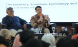 CEO PT Mahaka Media Tubagus Farash menyampaikan pemaparan saat acara FPEB Leaders Talk, di Auditorium FPEB Universitas Pendidikan Indonesia (UPI), Kota Bandung, Selasa (17/10/2023). Dalam acara tersebut hadir pula sejumlah narasumber lain seperti anggota legislatif Komisi 1 DPRD RI Muhammad Farhan, Direktur Pengembangan dan Inovasi PT Mustika Ratu Kusuma Ida Anjani, serta aktor dan Influencer Edi Brokoli. Kegiatan itu membahas tentang Sustainable Development Goals (SDGs) atau tujuan pembangunan berkelanjutan. (FOTO : Republika/ Edi Yusuf)