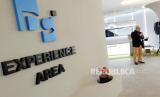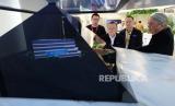 President Director PT. DCI Indonesia Tbk Toto Sugiri (kanan) dan Vice President Asia, Uptime Institute Patrick Chan (kedua kiri) melihat saat melihat hasil teknologi DCI Indonesia usai menerima penghargaan Tier IV Gold Certification of Operational Sustainability (TCOS) oleh Uptime Institute,di Jakarta, Selasa (17/10/2023). (FOTO : Dok.Republika)