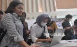 REPUBLIKA.CO.ID, BEKASI. -- Sejumlah pencari kerja mencari informasi di bursa kerja di Pusat Perbelanjaan, Bekasi, Jawa Barat, Selasa (17/10/2023).