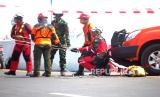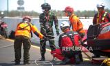 REPUBLIKA.CO.ID,YOGYAKARTA -- Tim SAR melakukan simulasi penyelamatan korban saat latihan penanggulangan bencana ASEAN Defence Ministry Meeting (ADMM) Plus di Laguna Depok, Bantul, Yogyakarta, Rabu (18/01/2023).